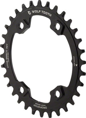 Wolf Tooth Elliptical 96 BCD Chainring - 32t 96 Asymmetric BCD 4-Bolt Drop-Stop For Shimano XT M8000 SLX M7000 Cranks BLK