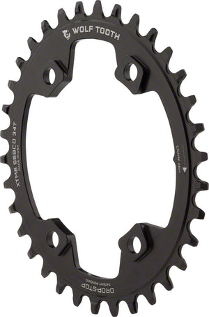 Wolf Tooth Elliptical 96 BCD Chainring - 34t 96 Asymmetric BCD 4-Bolt Drop-Stop For Shimano XT M8000 SLX M7000 Cranks BLK