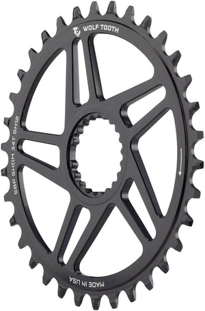 Wolf Tooth Direct Mount Chainring - 34t SRAM Direct Mount For SRAM 3-Bolt Boost Requires 12-Speed Hyperglide+ Chain BLK