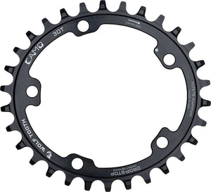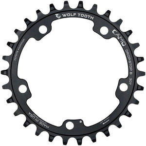 Wolf Tooth 96 Symmetrical BCD Chainring - 30t 96 BCD 4-Bolt Drop-Stop For Shimano Cranks BLK