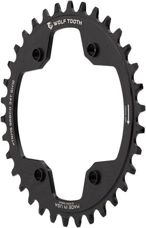 Wolf Tooth 96 BCD Chainring - 34t 96 Asymmetric BCD 4-Bolt Drop-Stop For Shimano XT M8000 SLX M7000 Cranks BLK