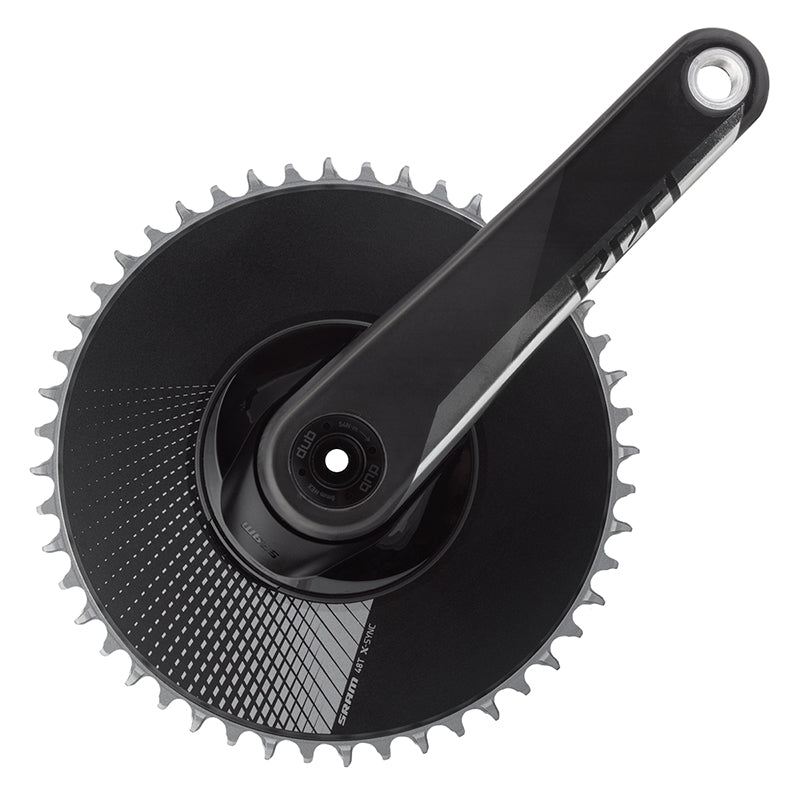 SRAM RED 1 AXS Crankset - 172.5mm 12-Speed 48t Direct Mount DUB Spindle Interface Natural Carbon D1. The SRAM RED 1 AXS crankset features exceptional 1x drivetrain design. It provides the simplicity and tighter gearing range that is well-suited for road racing and riding in flatter terrain where a wide range would go unused. The crankset is designed specifically for electronic shifting and can be upgraded to a power meter.Single-ring drivetrain simplifies functionality and reduces weight