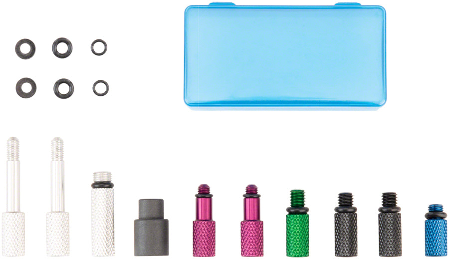 Designed and built FOR home use and the rigors of daily commercial use. Machined 7075 aluminum fittings to service Shimano Magura Clarks Promax Tektro TRP and other brands of mineral oil based hydraulic brake systems. Includes two syringes hoses with shut off clips multi-size bleed blocks bleed funnel and a unique attachable syringe mount. Housed in a rugged reusable case. Brake fluid not included