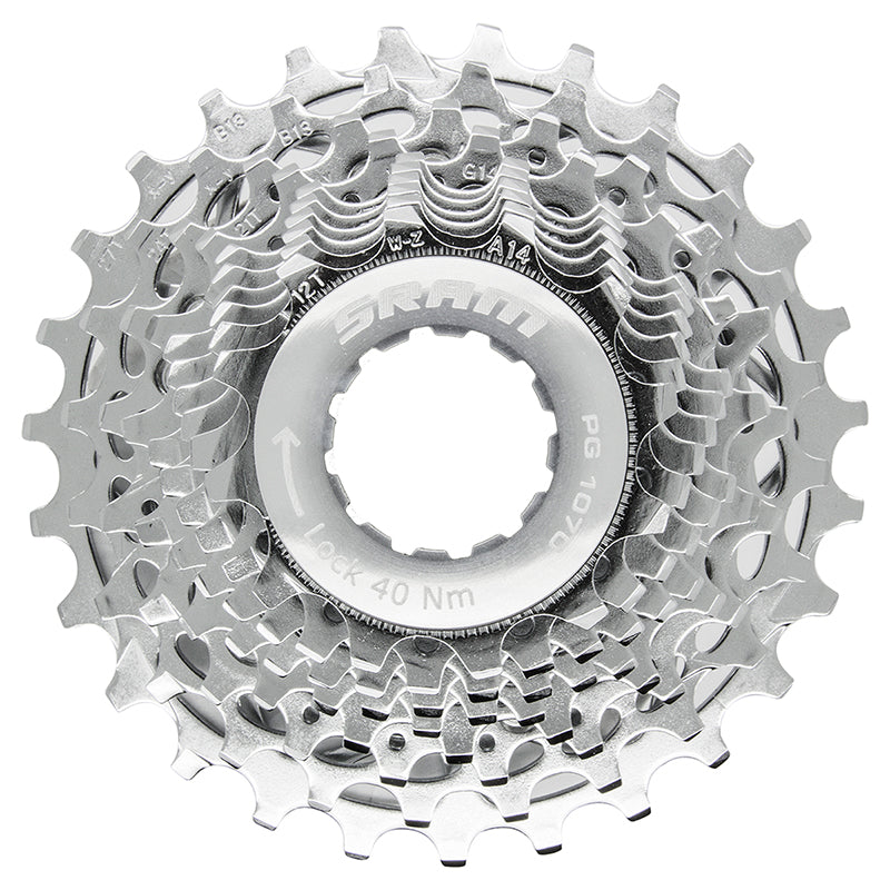 SRAM PG-1070 Cassette - 10 Speed 12-27t Silver. Ready for riders looking for high performance and good looks. Available in gear ranges to suit any riding style.